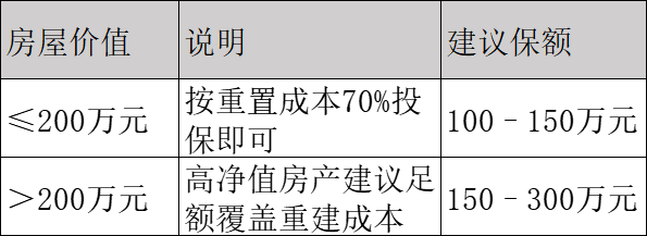 房屋主体保额按市场估值设定,通常为房产总价的60%-80%,新房可按购房价投保;